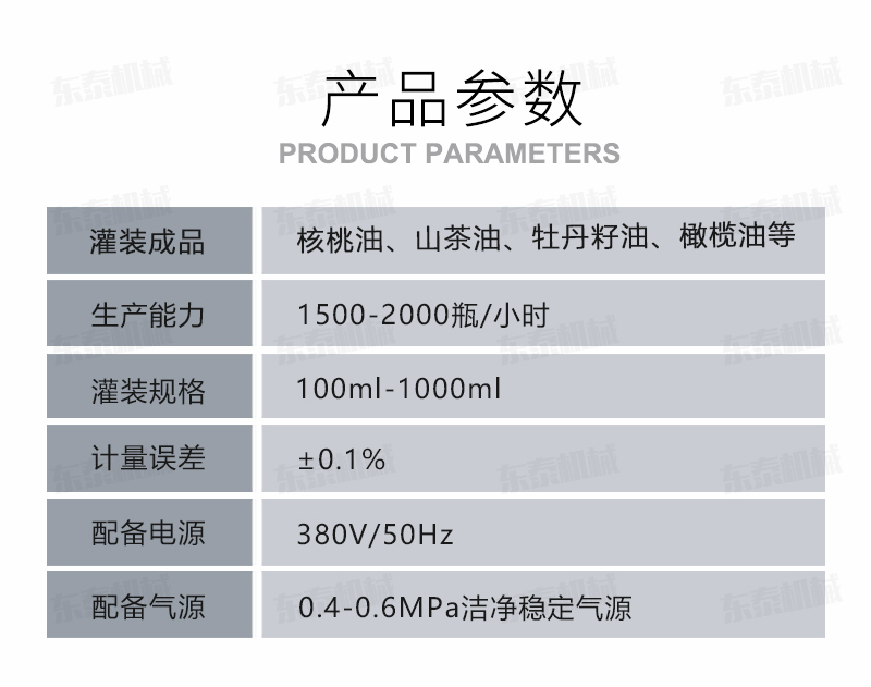 核桃油灌裝旋蓋生產(chǎn)線參數(shù)
