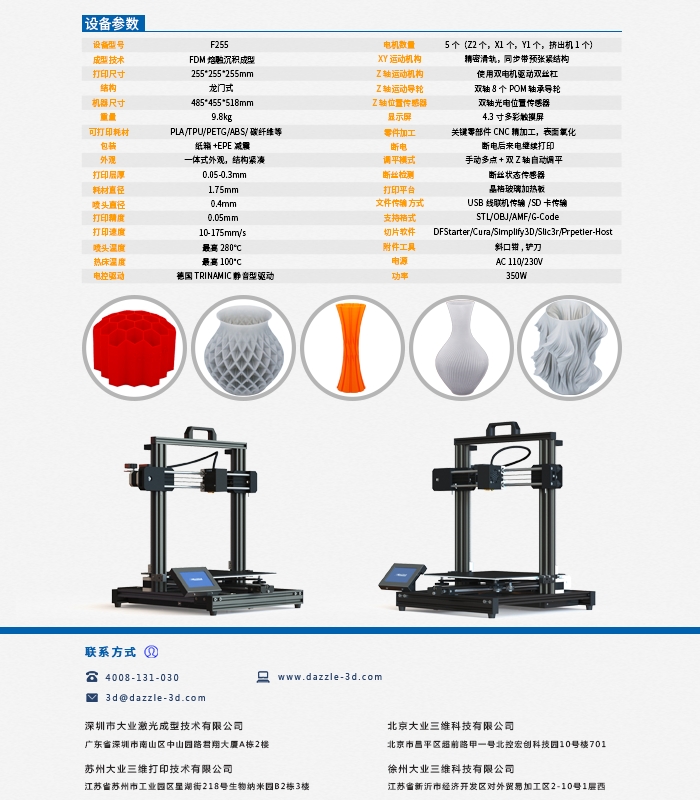 小方F255 3d打印機(jī)是一款采用全金屬設(shè)計(jì)的一款經(jīng)典大氣的桌面級(jí)FDM 3d打印機(jī),設(shè)備具備斷電續(xù)打、斷料續(xù)打、全彩智能觸摸的一款高精度3d打印機(jī),設(shè)備成型尺寸25X25X25厘米,可打印pla/tpu/petg/ABS/碳纖維等多種材料,行業(yè)應(yīng)用廣泛!